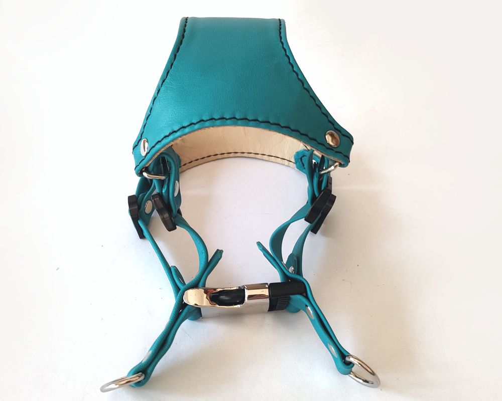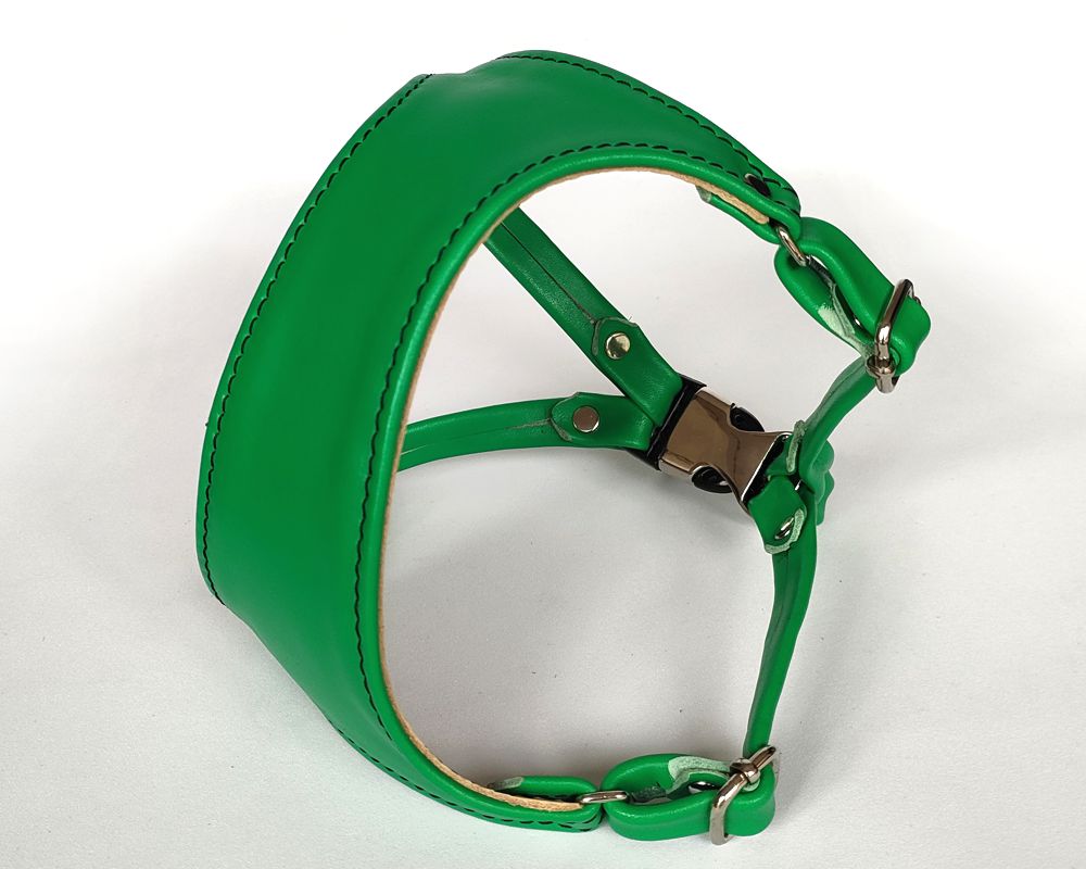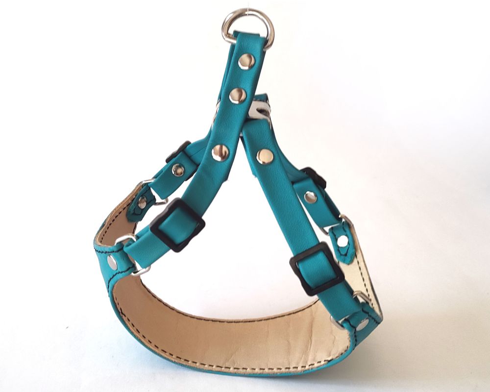 Fully adjustable stylish and soft nappa leather harness, with secure and easy to use one-click fitting.
