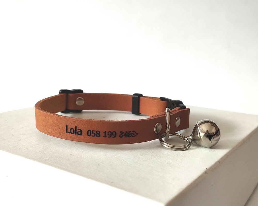 10mm Wide collar made with single layer of thin leather. The collar comes with a safety release buckle and detachable bell.
