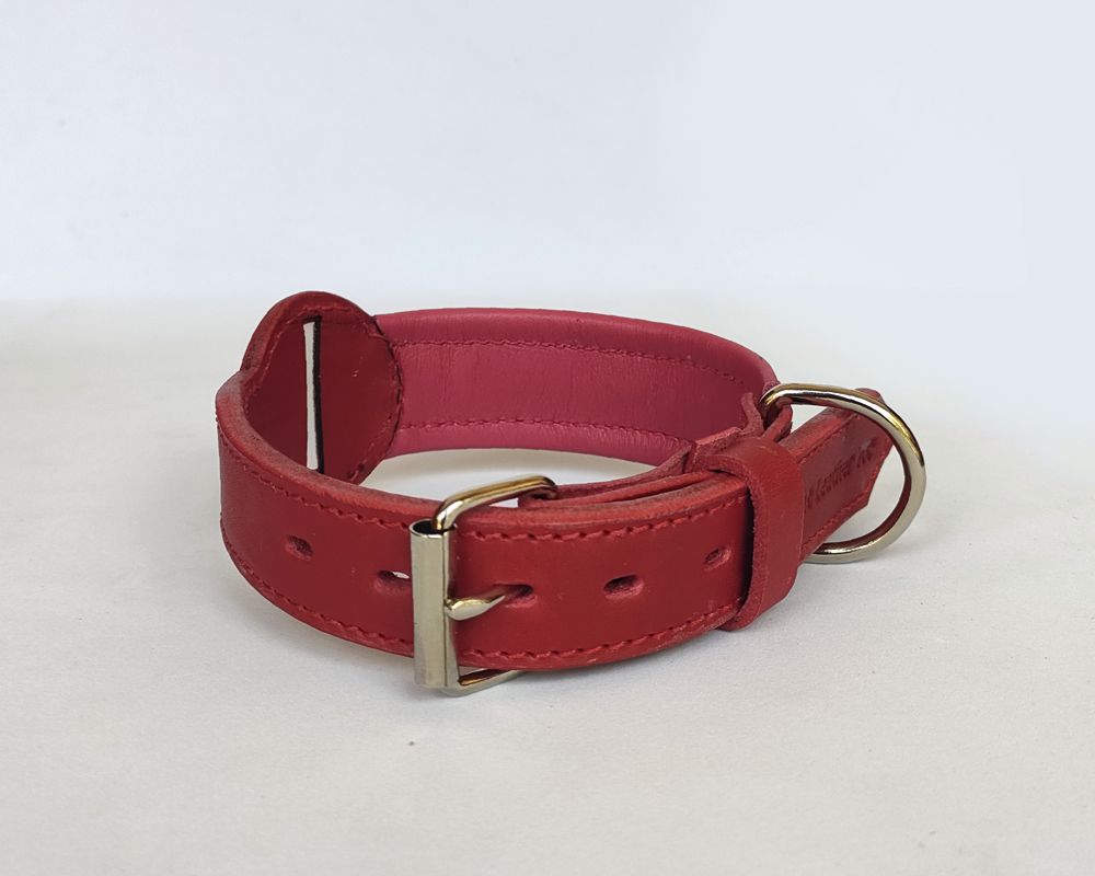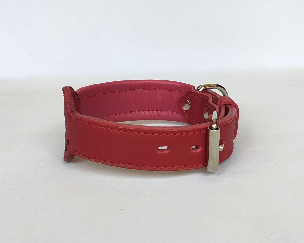 The leather collar will soften quickly, stretching a little in the process, just like a pair of leather shoes.