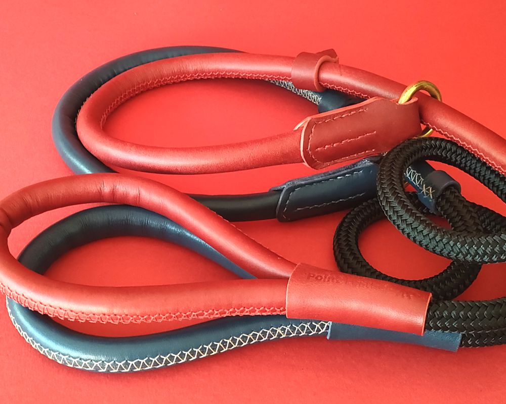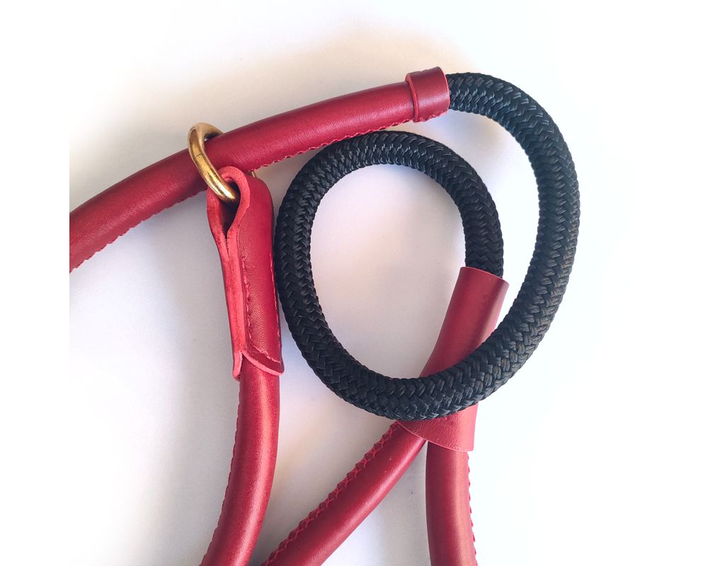 Red leather and rope slip leash