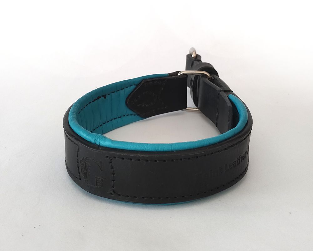 The leather collar will soften quickly, stretching a little in the process, just like a pair of leather shoes.
