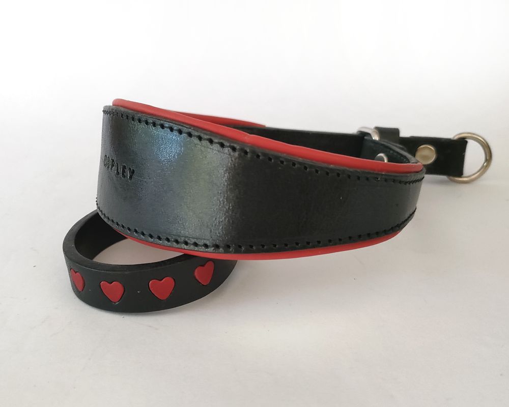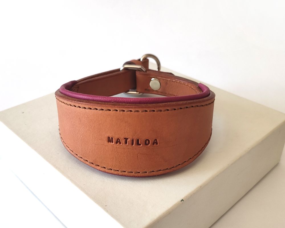 Nappa-lined martingale-style collar, ideal for greyhounds, whippets, saluki's or any sighthound.