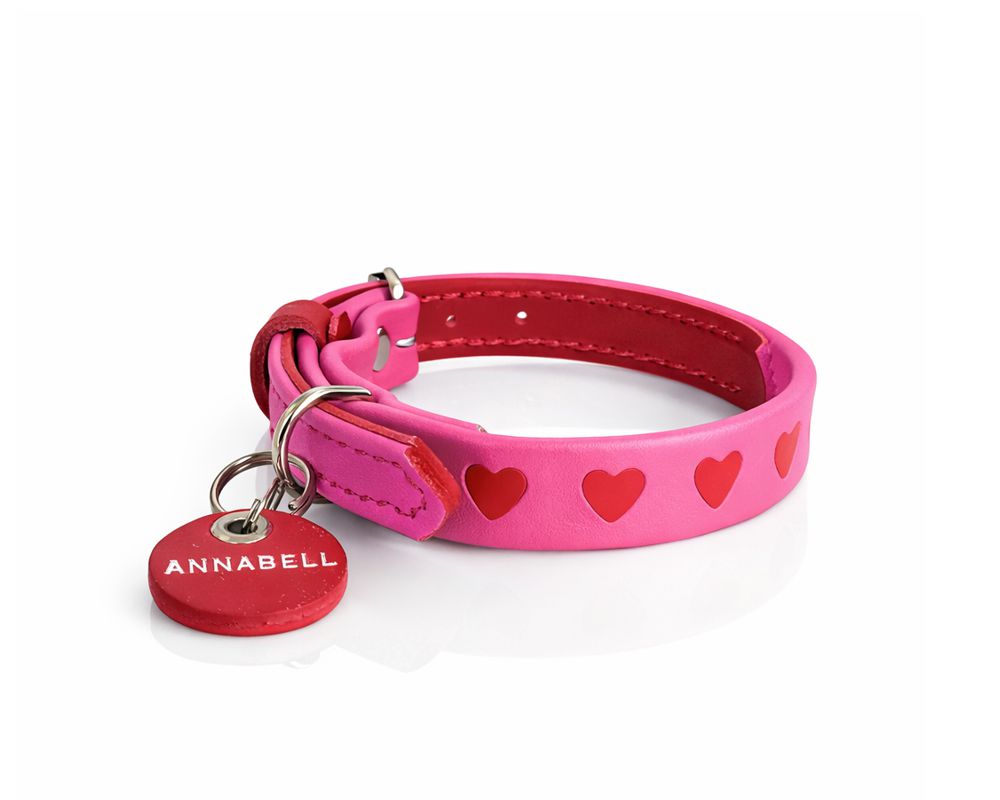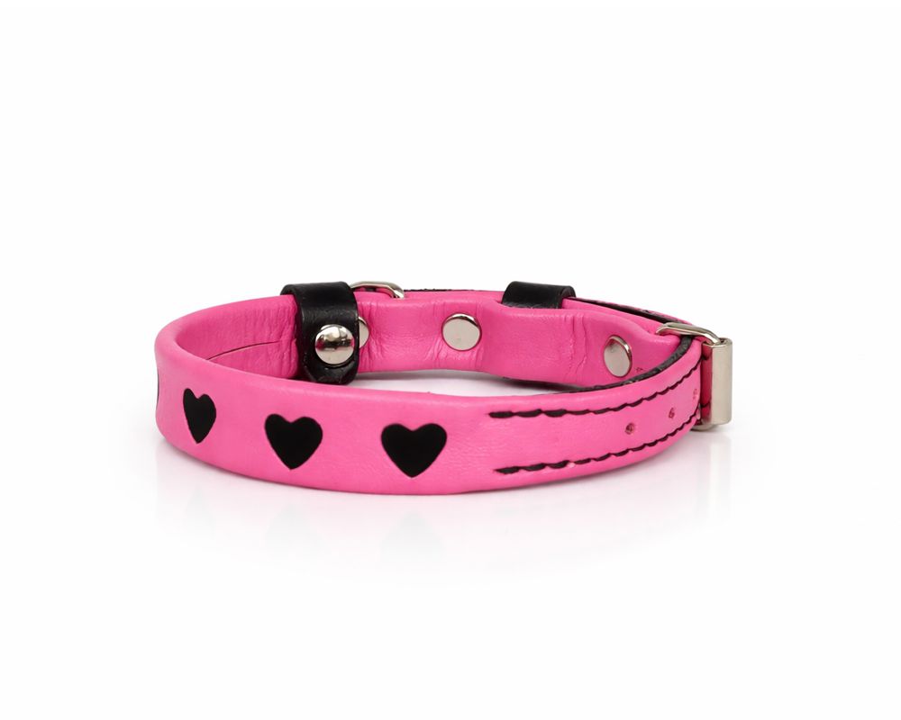Love can be worn! Soft and luxurious nappa leather collar with heart inlays.